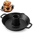 Onlyfire Universal Cast Iron Chicken Roaster, Pre-Seasoned Poultry Roaster Beer Can Turkey Holder with Roasting Pan for Most Grills and Oven