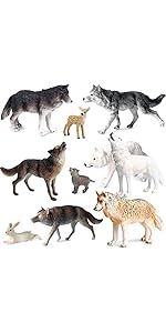 Figurines Playset, Wolf Figures Toys, 10pcs, Safari Animals Figures for Diora...