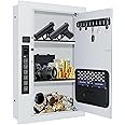 Wall Safe,Hidden Gun Safe Between Wall Studs with Battery Display&Type-C Port, with Document Organizer/Removable shelves/Key hook–Protect Valuables,Handgun, Jewelry, Documents,Cash (Digital Keypad)