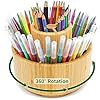 VaeFae Bamboo Pen Holder Organizer, 360° Rotating Art Supply Organizer, Desktop Storage for Marker Pens, Colored Pencil, Art Brushes, etc.