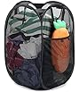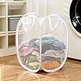 Foldable Laundry Basket, 14.1×14.1×22.8inch White Pop-Up Mesh Laundry Bag, Portable Foldable Laundry Hamper, Bathroom Laundry Room Travel Basket