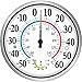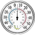 - Large Outdoor Thermometer Decorative: 12 inch diameter round wall thermometer hygrometer accurately measures temperatures from -50 to 60 degrees Celsius (-60 to 140 degrees Fahrenheit) and relative humidity levels from 20 to 90% with the dial's bold black pointers, the round outdoor thermometer accommodates all general temperature and humidity changes