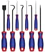 Mayhew Dominator Mini Hook & Pick Set has 4 shapes for pulling clips, rings, wires, gaskets, washers and other small parts. The blade extends throughout the handle and is fully heat treated. The two composite handle is designed for comfort and reduced hand fatigue. Overall length of each tool is 6.5 inches.