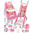 This item: PLAYFULBAY Baby Doll Stroller Set, 28-Piece Playset with High Chair, 2 Doll Outfits & Accessories, Imaginative Role-Play Gift for Toddlers 2-5