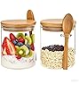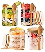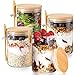 Glass Overnight Oats Jar, 4 Pack Containers with Bamboo Lids and Spoons, 18 OZ Glass with Clear Food Storage Jar for Sugar, Spices,Coffee Bean,Flour,Cookie,Candy,Nuts,Bath Salt Reusable Jars