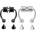 2 Pieces Fake Nose Ring Fake Nose Rings Hoops Stud Non Piercing Magnetic Septum Nose Ring for Men Women Stainless Steel Hoop Reusable Fake Nose Jewelry Clip On Nose Ring (Silver & Black)