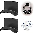 2 Pack Wall Mount Headphone Holder - Adhesive Headset Hanger for Gaming Earphones & Controller, Universal Vertical Hook with 3M Sticker (Black)