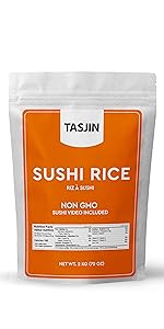 Tasjin Sushi Rice (1lb) | Premium Medium Short Grain| Vegan and Non-GMO, Packaged In Canada| White Sticky Rice Best for Sushi, Rice Ball and Everyday Japanese Dishes| Exclusive Step by Step Sushi Making Tutorial
