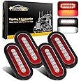 Partsam 4Pcs 6.3" Inch Oval Led Trailer Taillights Stop Brake Lights Running Red and White Backup and Reverse Lights, Sealed 6.3 inch Oval led Trailer Lights Kit Grommet Mount for RV Trucks