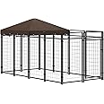 PawHut Dog Kennel Outdoor with Waterproof Canopy, Dog Run with Galvanized Chain Link, Secure Lock, for Backyard and Patio, Large and Medium Sized Breeds, Chickens, Ducks, 9.3' x 4.6' x 5.2'