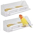 Pawfly 2 Pack Bird Feeder for Cage Hanging Plastic Feeder with Hooks Water Dispenser with Perches Bird Water Feeder for Cage Parrot Food Bowl for Parakeet Cockatiel Canary