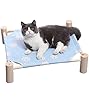 Natural Material Elevated Cat Hammock for Indoor and Outdoor, Removable Wooden Frame with Washable Fabric - Unique Cat Furniture & Stool