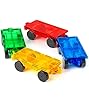 PicassoTiles 2 Piece Car Truck Construction Kit Toy Set Vehicle Educational Building Tile Magnetic Blocks Puzzle Magnets Toys with Re-Enforced Hitch and Long Bed for Girls Boys Toddler Ages 3+