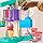 Press the handle down to see the cup or cone spin around as it fills with color-edged pretend soft-serve.