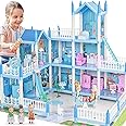 - 【Blue Dollhouse with White Lights】 - No more of the same old pink or brown. This new blue doll house comes with a white flashable string of lights that will make the house warmer and more comfortable at night. With a beautiful gift box, this large doll house is the perfect toy for boys and girls.
