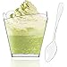 • PLAZOTTA 100 Pack 3.5 oz Clear Plastic Dessert Cups with 100 Tasting Spoons, Square Parfait Appetizer Cups for Party, Weddings