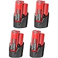 - 【Battery Specification】Replacement for Milwaukee m 12 battery | Type: Lithium-ion | Voltage:12V | Wattage: 42Wh | Capacity: 3500mAh | Rechargeable | 4 Packs.