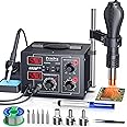 Preciva 852D++ 2-in-1 Hot Air Rework Soldering Iron Station Kit, Adjustable Hot Air Gun Holder for Electronics Repairing Desoldering Welding, Auto Sleep & Calibration