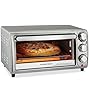 - EASY-TO-USE MANUAL CONTROLS: This compact toaster oven has simple controls that are straightforward and easy to use. Perfect for anyone who wants a toaster oven that gets the job done without being complicated. Includes a 30 minute timer with ready bell.