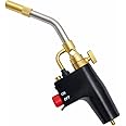 Trigger-Start Torch Head ,MAPP / Propane Gas Torch Kit with Push Button Start - Angled Burner Handheld Torch for Light Welding, Soldering, Brazing, Heating, Thawing and More