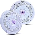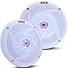 Pyle Marine Speakers - 4 Inch 2 Way Waterproof and Weather Resistant Outdoor Audio Stereo Sound System with LED Lights, 100 Watt Power and Low Profile Slim Style - 1 Pair - PLMRS43WL (White)