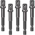 5 Pack 3/8 inch Square Socket Adapter Bit Set, Impact Driver Power Bits with 1/4" Hex Shank, for Automotive DIY