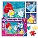 Piece together these 3 colorful 49 piece puzzles, featuring Ariel, Cinderella, Belle and their friends.