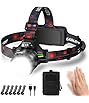 - 【12 Modes & Motion Sensor】Headlamp rechargeable has 3 main light illumination modes (High- Medium-Strobe), 2 telescopic modes (spotlight, floodlight), 6 back warning light modes, and 1 motion sension mode. Floodlights are used for large-area lighting, and spotlights are used for long-distance lighting. Press the main switch for 2 seconds to enter the motion sensing mode, easily control the headlamp on/off with a wave of your hand on the motion-sensing side of the headlamp.