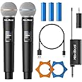Rechargeable Wireless Microphone, NEWBAXS Dual Cordless Handheld Dynamic Wireless Mics,1/4'' Output for Karaoke, Meeting, Wedding,Singing, Church