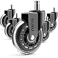 Office Chair Caster Wheels Replacement Rubber Chair Casters (Set of 5), 3 Inch Heavy-Duty Office Chair casters for Hardwood Floors Carpet and Tile Floors Universal fit