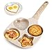 Made with aluminum & coating, it’s a versatile nonstick frying pan/skillet that cooks 4 portions of eggs, pancakes, or mini omelets in star, heart, and round shapes at once.