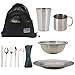 Product Summary: Compact Camping Mess Kit for 1 Person, Reusable Camping Dish Set, Polished 304 Stainless Steel Complete Camping Plates Cups and Bowls Set with Mesh Bag for Backpacking, Hiking