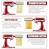 - 【3-PIECE KITCHENAID PASTA ATTACHMENTS】Whether you're a novice or a chef, this kitchenaid pasta attachment can make a variety of pasta dishes in ten minutes. The 3 Piece pasta attachment kitchen aid comes with spaghetti cutter and fettuccine cutter, as well as a pasta roller. Adjust the thickness and width of the dough to get the desired texture