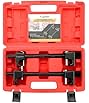 This coil spring compressor tool set features an adjustable bracket that ensures stable parallel compression, as well as protection against accidental release of the spring under high tension.