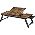 SONGMICS Laptop Desk, Bed Sofa Breakfast Tray, Adjustable Tilt Top, Right-Left Handed, Adjustable Folding Legs, Drawer, Rustic Dark Brown ULLD110B01