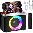 Karaoke Machine with 2 Wireless Microphones, Portable Speaker for Adults & Kids, PA System with Shoulder Strap & Party Lights for Outdoor Events, Support USB/AUX