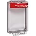 Safety Technology International, Inc. STI-13010FR Universal Stopper without Horn with Flush Mount, Protective Polycarbonate Cover - This unique Indoor/outdoor polycarbonate cover helps stop false fire alarms without restricting legitimate operation of pull stations. This tough polycarbonate cover is ideal for schools, hospitals, nursing homes, stores, hotels and public buildings of almost every kind. The strong, durable construction takes the toughest knocks while it guards against accidental or intentional physical damage. The cover is 4 inches in depth and clear, flush mount with a red housing. Sized to fit most pull stations. Fire label in bold white gives clear instructions on how to remove Stopper. Fire Label reads: "IN CASE OF FIRE - LIFT COVER PULL FIRE ALARM". It protects pull stations, keypads, intercom stations, emergency buttons, electrical light switches, etc. It is ADA Compliant and UL/CUL Listed for US and Canadian safety standards. Stopper is UV-Stabilized to keep cover clear from the elements. Polycarbonate rated -40° F to 250° F (-40° C to 121° C). STI "We protect the things that protect you."