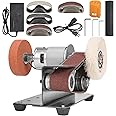 - 【Knife Making】: By installing a grinding wheel and a polishing wheel on each left and right side of the belt sander, you can quickly assemble a mini benchtop belt grinder with sanding belts, and it also has a speed adjustment function, it's a super tool for handmade DIY knife making