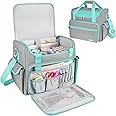 SPACIOUS MAIN COMPARTMENT: The size of craft organizer bag is 15.2x7.7x13in. The large main compartment fits scrapbooks/photo albums up to 12 inches and accommodates a 15.6'' laptop. The roomy interior with utility small pockets ensures organized storage for bulky supplies.