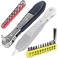 Right Angle Screwdriver Kit-Including 90 Degree Offset Screwdriver 21pcs Bent Ratchet Wrench Bit Socket,Mini Low Profile Ratcheting Wrench Set, Angled for Tight Spaces Phillips Screwdriver Mens Gift