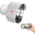 Hotfun 1080P Security Camera Outdoor, Wi-Fi Wireless Home Surveilance System, Cloud Storage, Smart AI Human Detection, Spotlights Bullet Cam, Color Night Vision, Rechargeable Battery, 2-Way Talk