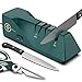 - 3-in-1 diamond abrasives knife sharpener electric: This versatile kitchen knife sharpener is designed to sharpen straight, serrated, and ceramic knives. Equipped with diamond sharpening wheels, it efficiently creates sharp edges faster than other materials, making it excellent for both quick sharpening and time-saving.