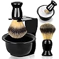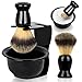Mens Shaving Brush and Bowl Set, 3 in 1 Shaving Brush Set for Men with Shave Brush Bowl ABS Stand with Razor Slot, Perfect Father's Day Men Gift Set for Wet Shaving Experience - Black