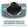 Text reads 'INTEGRATED BRISTLES FOR DEEPER CLEANING' and 'Adds gentle scrub action inside the bag'. Shows sock and shoe cleaning demonstration images.
