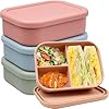 Product Summary: 4 Pack Silicone Bento Box 3-Compartment Lunch Boxes, Meal Prep Portion Control Containers for Adults Students School Picnic Work, Microwave Dishwasher Freezer Safe -4 Colors