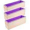 3 Pack 42oz Silicone Soap Molds, Flexible Rectangular Silicone Soap Making Tools Soap Molds Set DIY Handmade Loaf Soap Molds Kit with Wood Box For Soap Cake Candle Making(Purple)