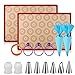 Silicone Macaron Baking Mat Kit - 16pcs Set, Macaroon Baking Mat Set of 2 Half Sheet Macaron Silicone Mat Nonstick Macaron Mat Sheet,6 Piping Tip,2 Piping Bag with 3 Bag Tie, 2 Coupler (11.6"x16.5")