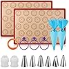 Silicone Macaron Baking Mat Kit - 16pcs Set, Macaroon Baking Mat Set of 2 Half Sheet Macaron Silicone Mat Nonstick Macaron Mat Sheet,6 Piping Tip,2 Piping Bag with 3 Bag Tie, 2 Coupler (11.6"x16.5")