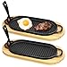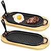 This set includes 2 small cast iron skillet, 2 natural wooden trays, 2 removable handles. The cast iron sizzler skillet is about 11.69"x 6.22"x 1.7", the wooden base is about 15.55"x7.48"x0.59", and the handle is about 5.51". The carefully designed size and wooden base, and the intimate anti-scalding design of the removable handle always put your safety first, making it a trustworthy kitchen partner