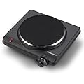 Elite Gourmet ESB-301BF# Countertop Single Flat Burner, Electric Hot Burner, Temperature Controls, Power Indicator Lights, Easy to Clean, 1000 Watts (Black)